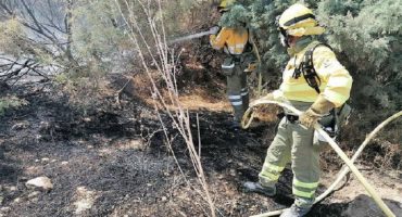 Efectivos de Infomur trabajan para extinguir el incendio de la Sierra de la Silla, ya estabilizado