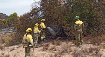 Un total de unas 40 personas continúan trabajando este martes por la mañana en la extinción del incendio forestal declarado el sábado por la tarde en la Sierra de la…